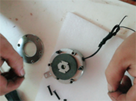 制動(dòng)或者剎車(chē):電磁制動(dòng)器通過(guò)24VDC的電動(dòng)驅(qū)動(dòng)操作,但機(jī)械地傳遞扭矩。當(dāng)施加電壓/電流時(shí),24VDC的線(xiàn)圈通電后就會(huì)產(chǎn)生磁場(chǎng)。這將線(xiàn)圈變成一個(gè)電磁鐵,產(chǎn)生磁通的磁力線(xiàn)。磁通量將電樞吸引到剎車(chē)面上。電樞和輪轂通常安裝在軸上(客戶(hù)提供的)是旋轉(zhuǎn)的。由于制動(dòng)線(xiàn)圈牢固地安裝,制動(dòng)電樞,輪轂和軸在短時(shí)間內(nèi)停止。制動(dòng)或者剎車(chē)是通過(guò)把電壓/電流到線(xiàn)圈開(kāi)和關(guān)。只有在減速過(guò)程中發(fā)生滑移。當(dāng)電磁制動(dòng)器動(dòng)力法蘭或者構(gòu)件接合吸合時(shí),一旦剎車(chē)完全停止,就不會(huì)有打滑現(xiàn)象。釋放或者分開(kāi):當(dāng)電流/電壓從電磁制動(dòng)器中移除時(shí),電樞可以與軸自由轉(zhuǎn)動(dòng)。在大多數(shù)設(shè)計(jì)中,彈簧在釋放動(dòng)力時(shí)將銜鐵遠(yuǎn)離制動(dòng)面,產(chǎn)生一個(gè)小的氣隙。